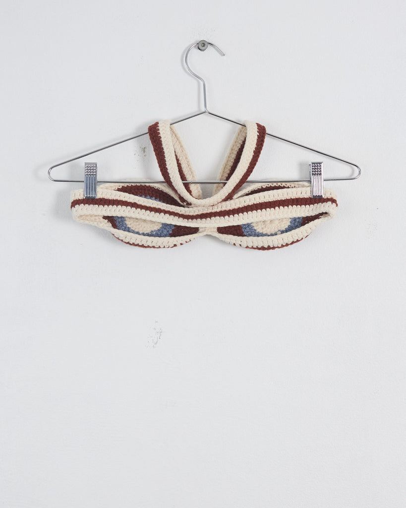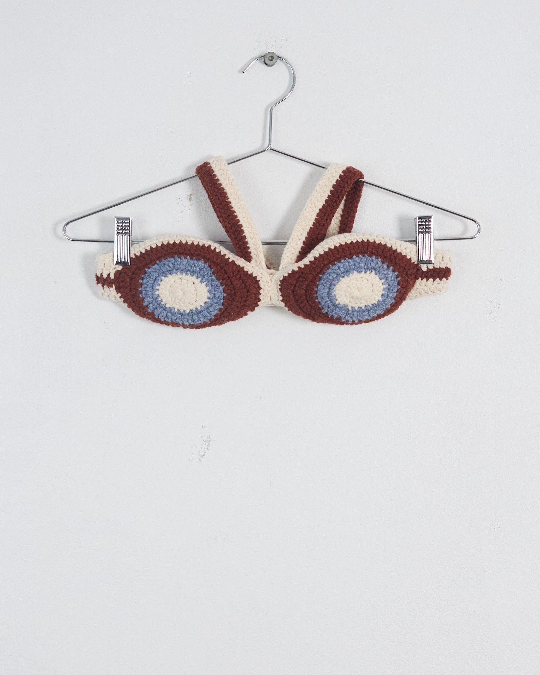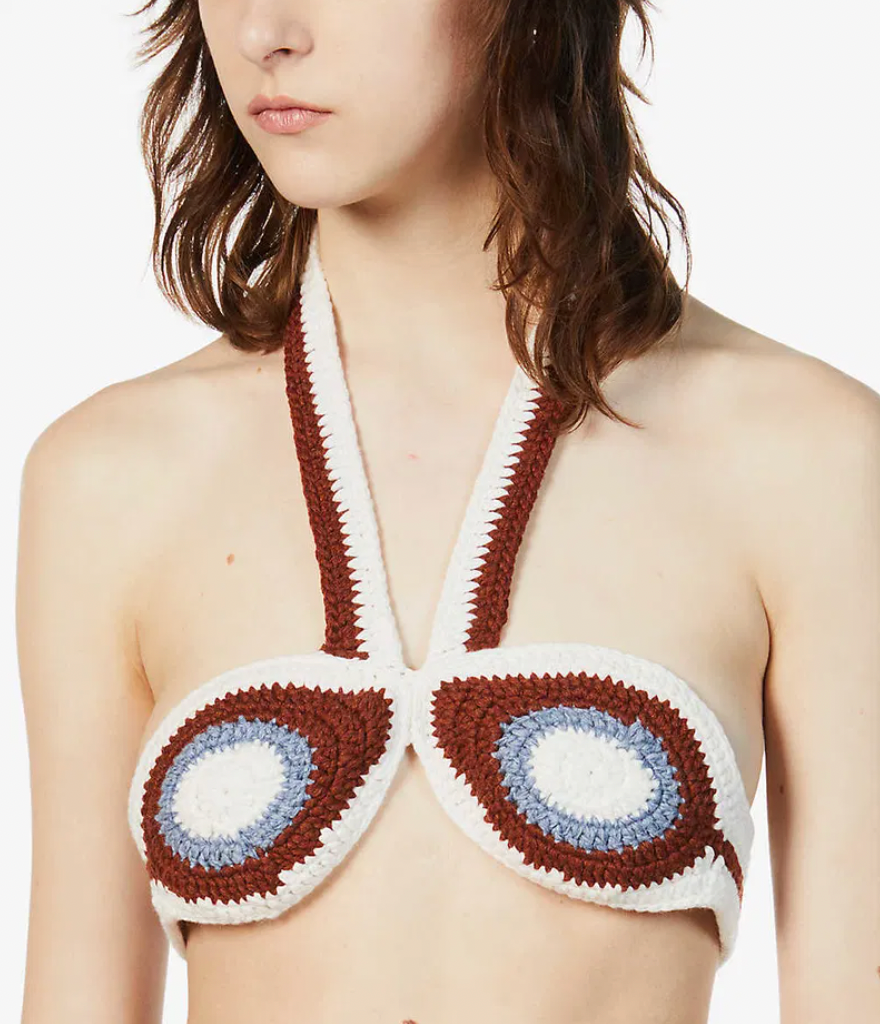 Khaite 'jolie' crochet cashmere bralette, cream, blue & brown, 6