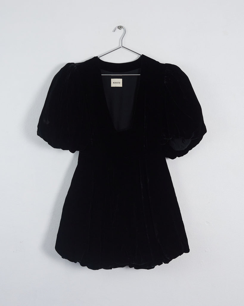 From the Resort 2020 collection by Khaite, this 'leona' dress has a dramatic Victorian-inspired silhouette. This mini dress is cut from soft velvet with puffed sleeves and a voluminous bubble hem that balances the slim-fitting bodice and deep v-neckline.