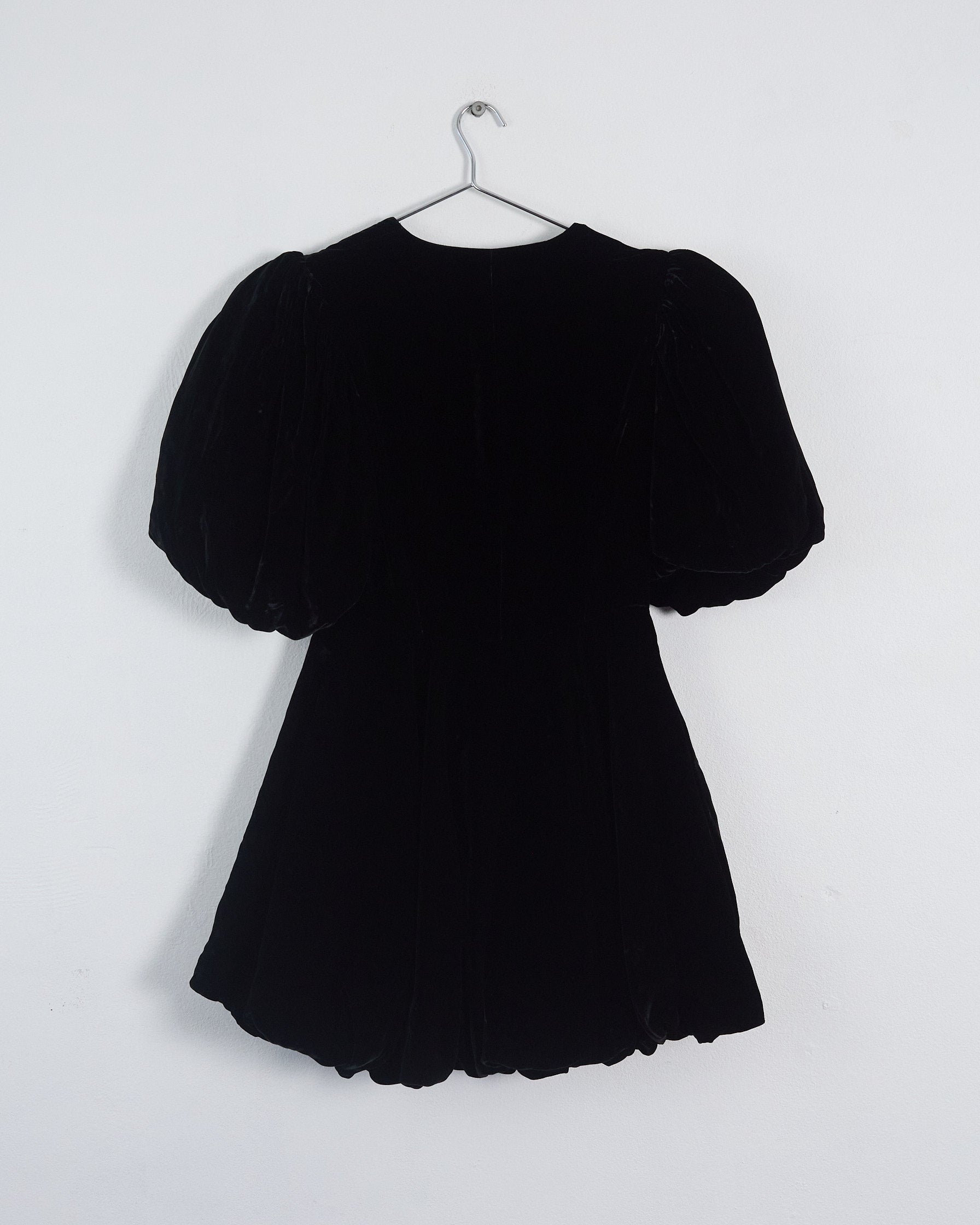 Khaite resort '20 'leona' velvet puff sleeve mini dress, black, 6