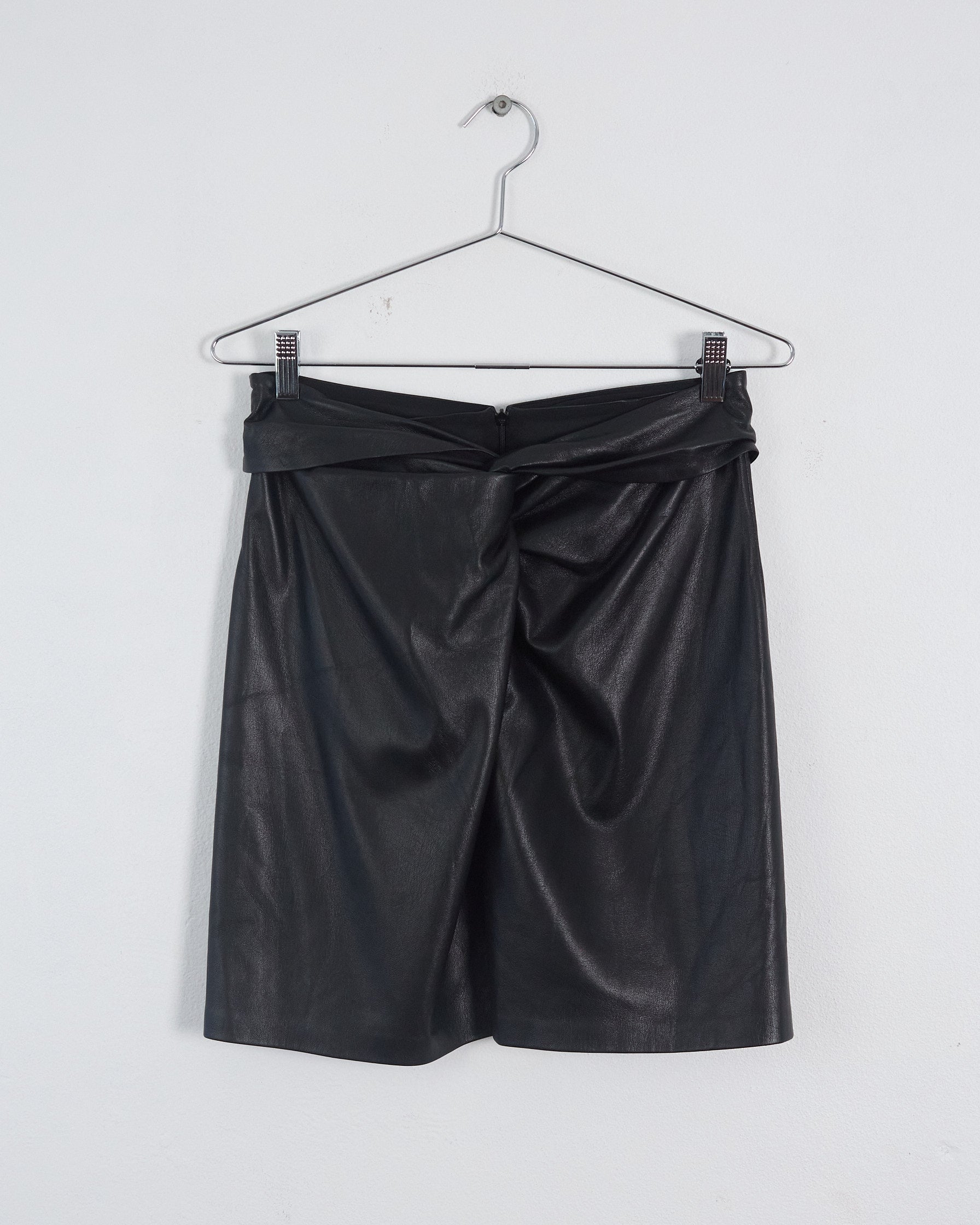 Nanushka 'milo' vegan leather sarong mini skirt, black, 10