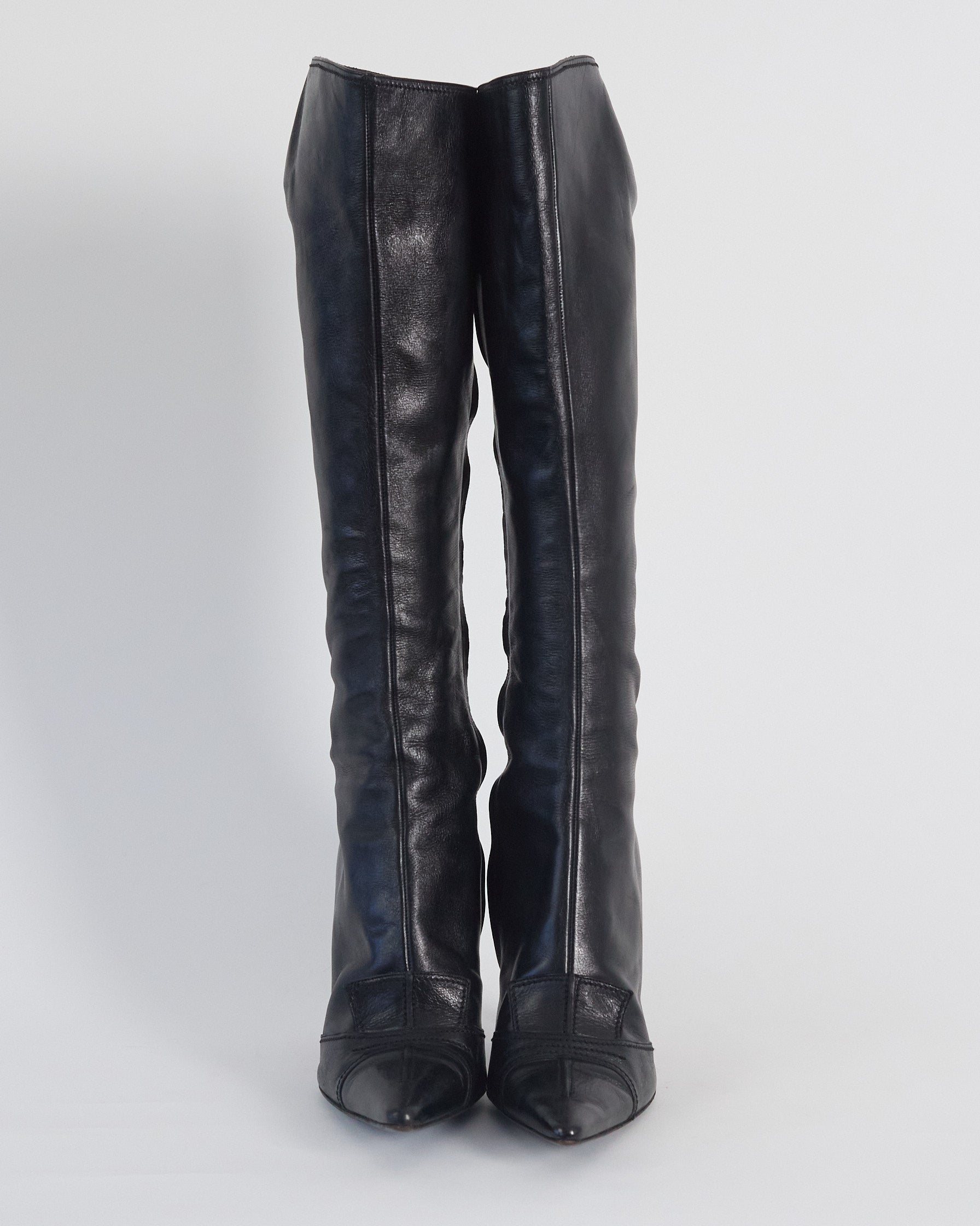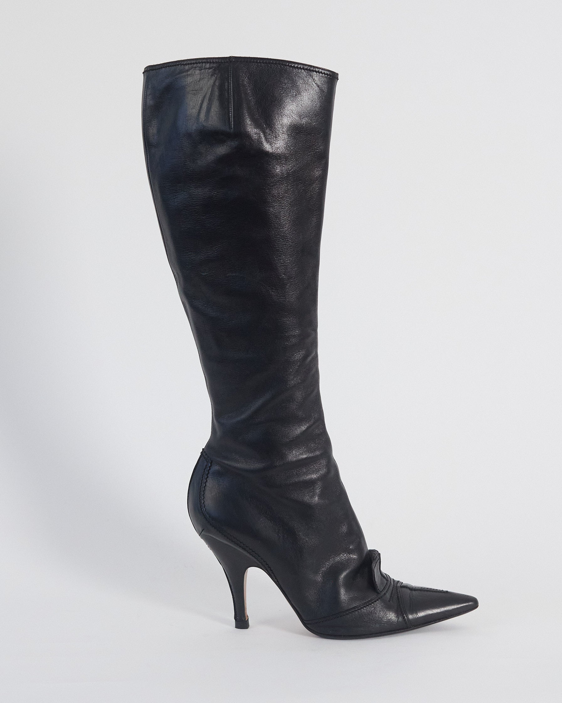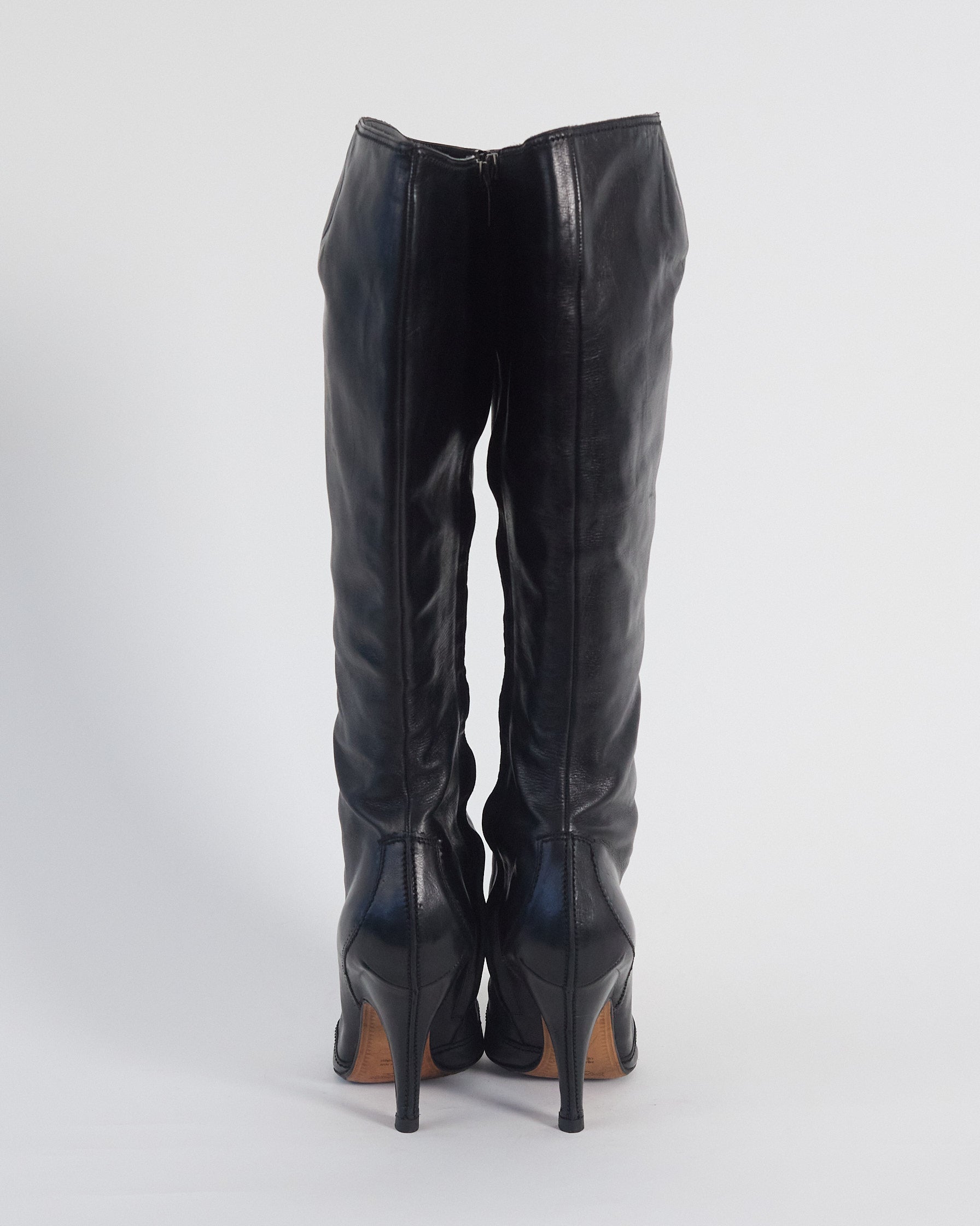 black vintage leather knee high boots