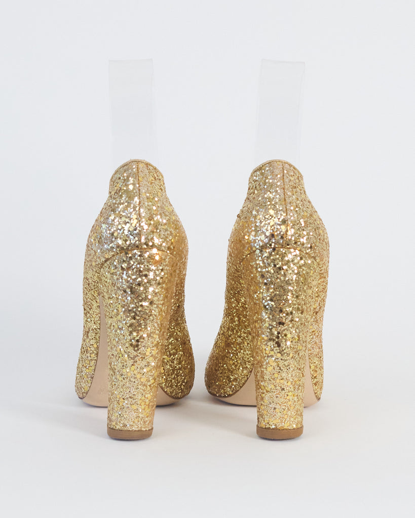 gold glitter embellished pumps