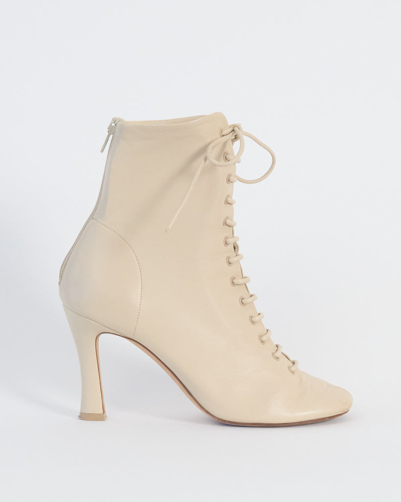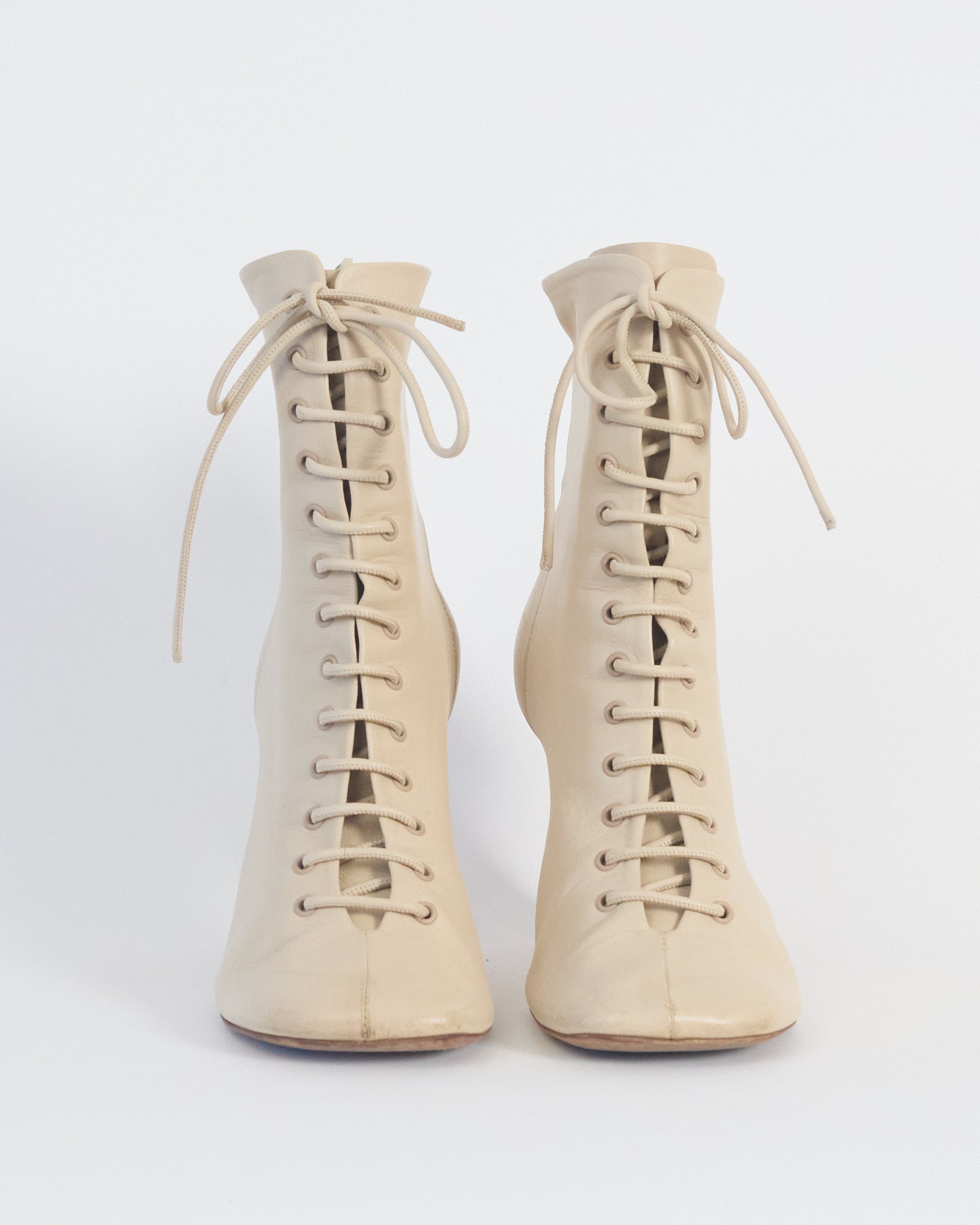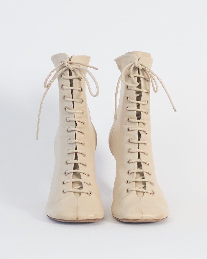 Céline spring '18 lace up leather ankle boots, beige, 37