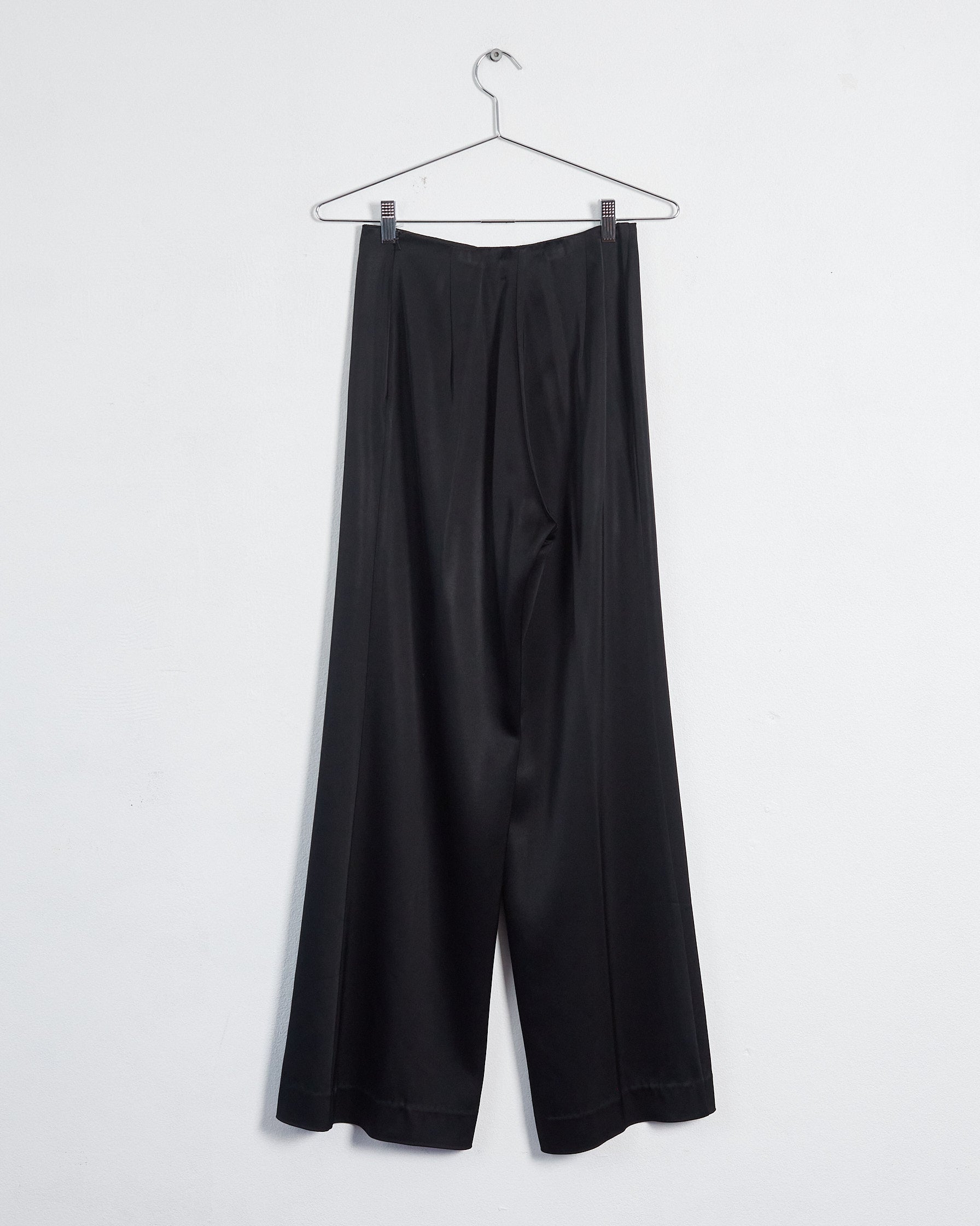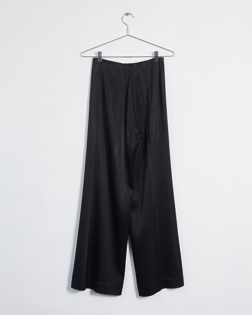Crafted from a fluid Japanese sateen, these 'marnie' trousers by Paris Georgia offer a flattering high-rise waistline that balances the sweeping wide leg. The grosgrain ribbon-lined waistband, invisible side zip and no pockets add to this flawless silhouette.