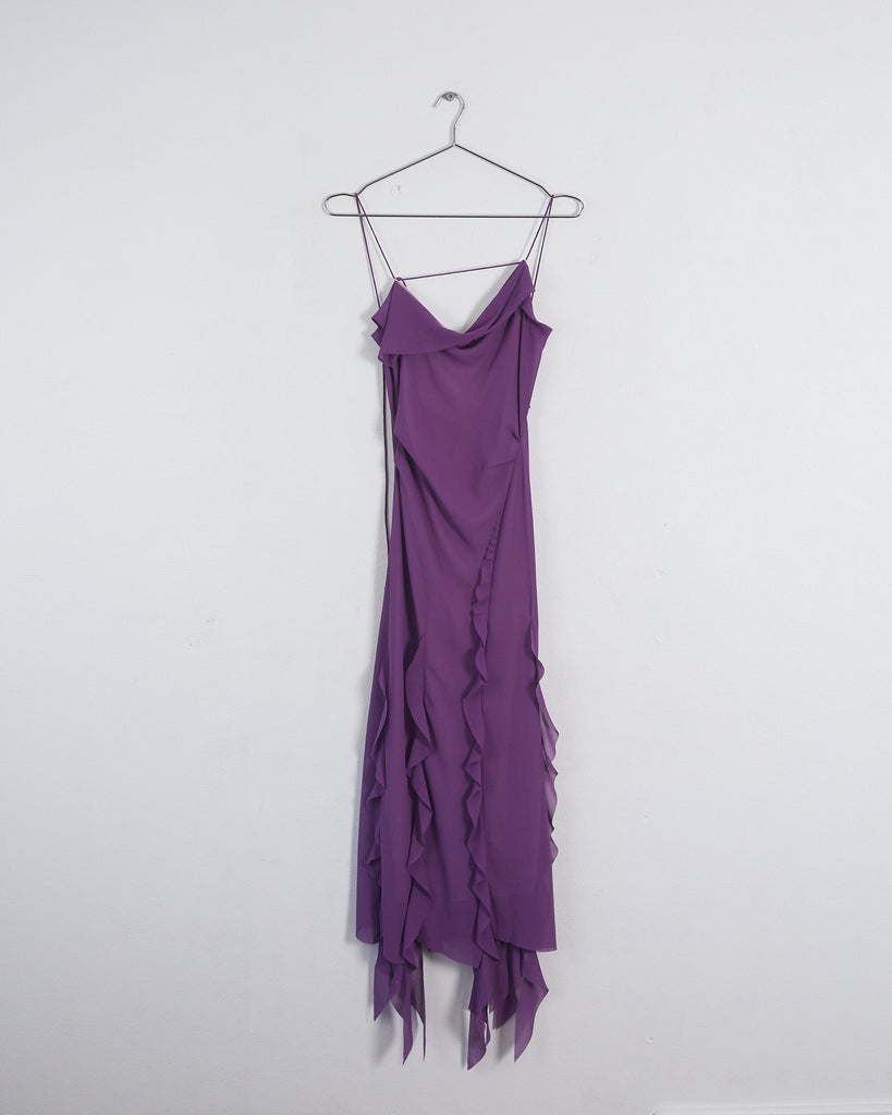 Acne Studios ruffled asymmetric slip dress, purple, 6