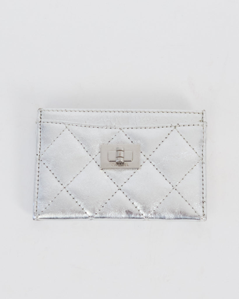 Chanel mini 2.55 quilted card holder (in box), silver
