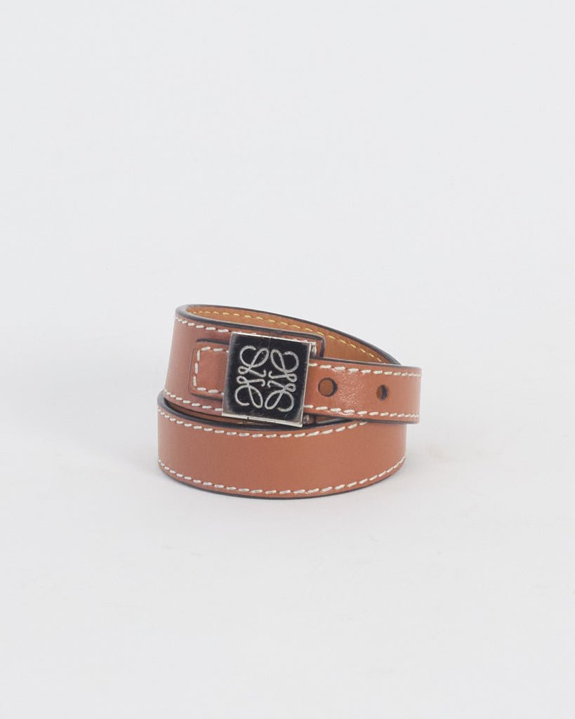 Loewe 'anagram' logo leather wrap bracelet (in box), tan & silver