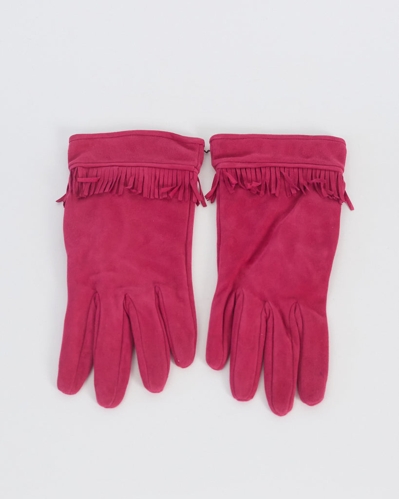 Yves Saint Laurent suede fringed gloves (in box), pink, 7"