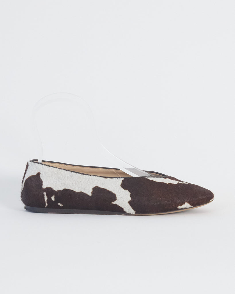 Le Monde Béryl cow print 'regency' calf hair ballet slippers, brown & white, 39