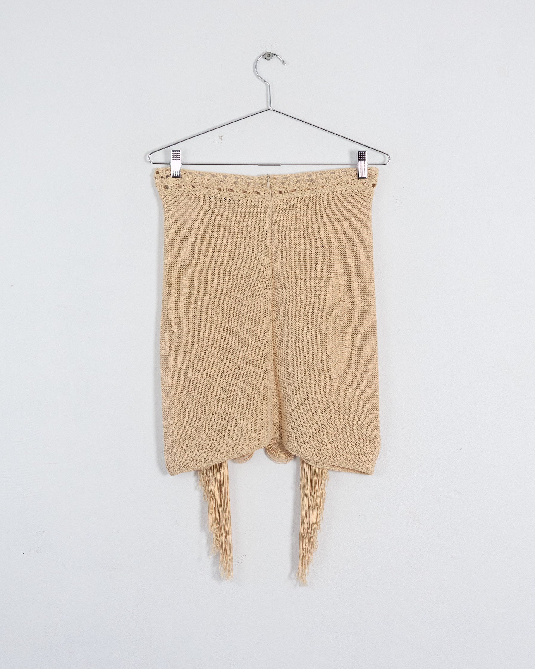This Magda Butrym skirt showcases handcrafted crochet in a luxurious silk blend, rendered in a sophisticated nude tone. The draped silhouette is enhanced by delicate fringe detailing, while a concealed back zip ensures a seamless finish.