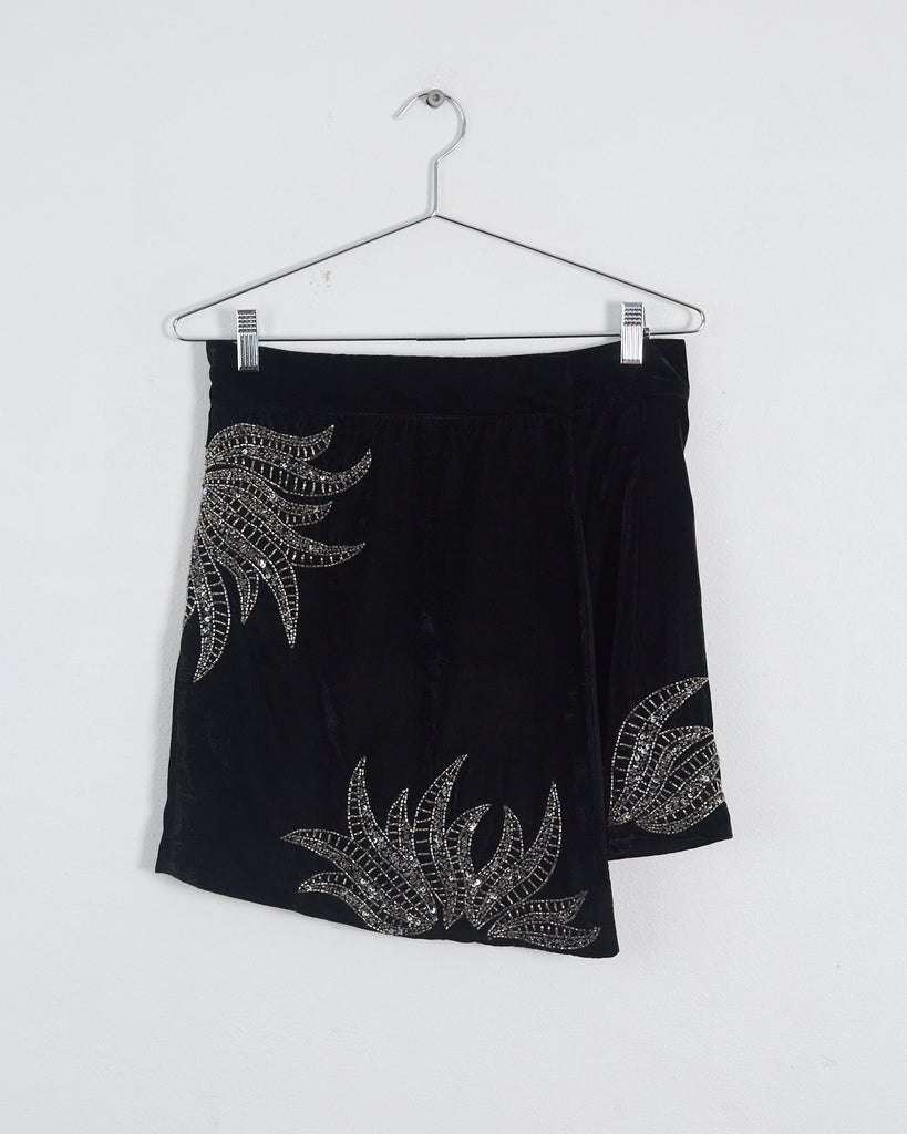 Dodo Bar Or sequin embellished velvet mini skirt, black & silver, 12