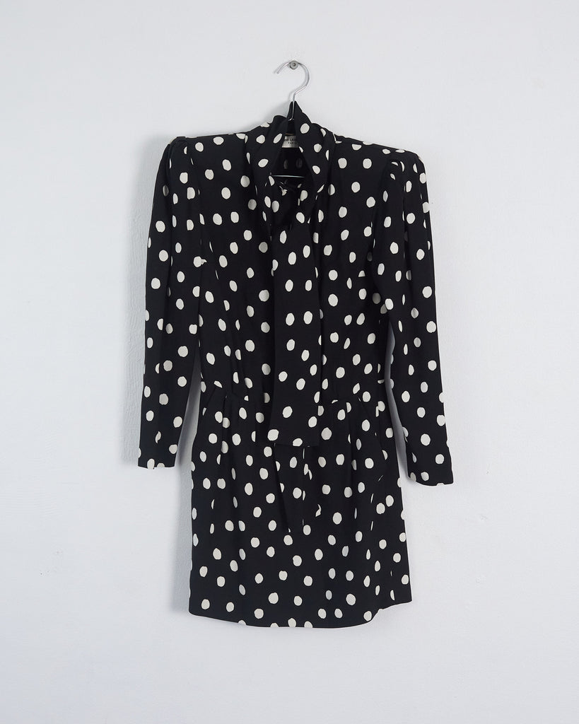 Saint Laurent polkadot pussy bow mini dress, black & white, 8