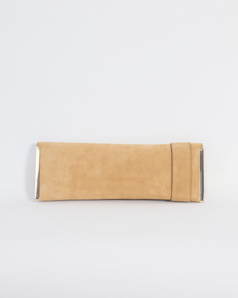 Gucci 'romy' crystal embellished suede clutch bag, light tan & gold