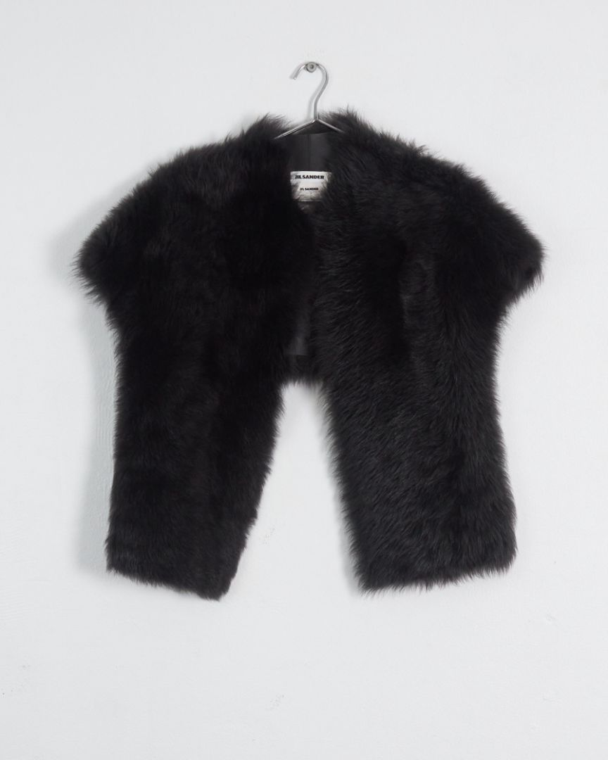 Jil Sander shearling fur gilet/scarf, black