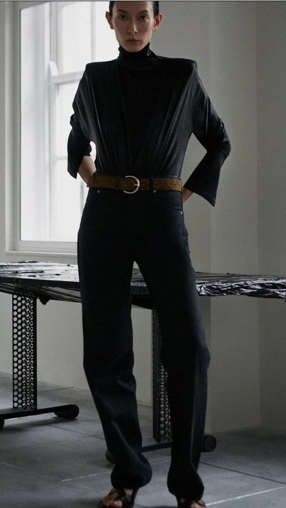 Phoebe Philo collection 'B' silk funnel neck blouse, black, 10