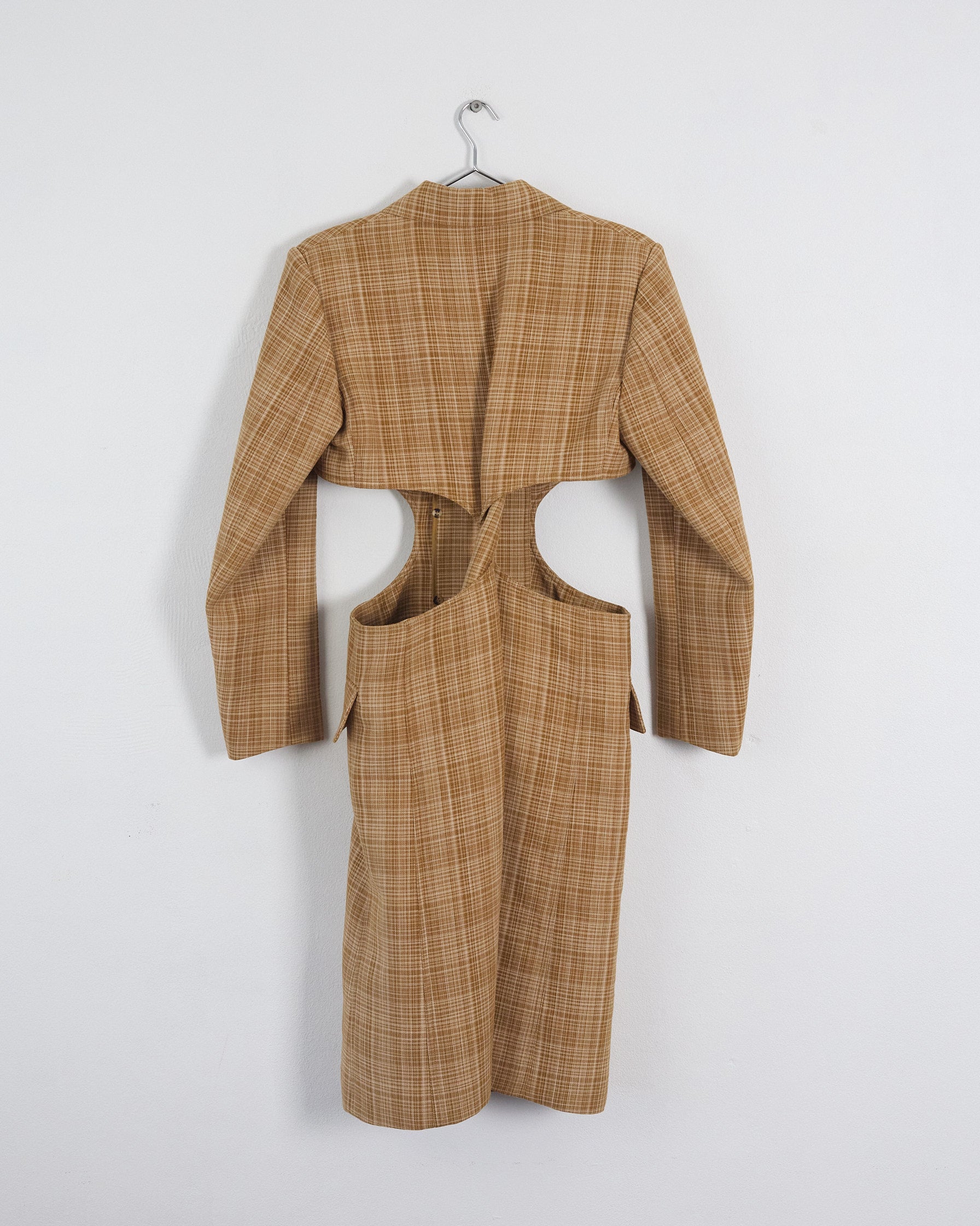 Céline spring '17 plaid cutout waist frock coat, camel, 8