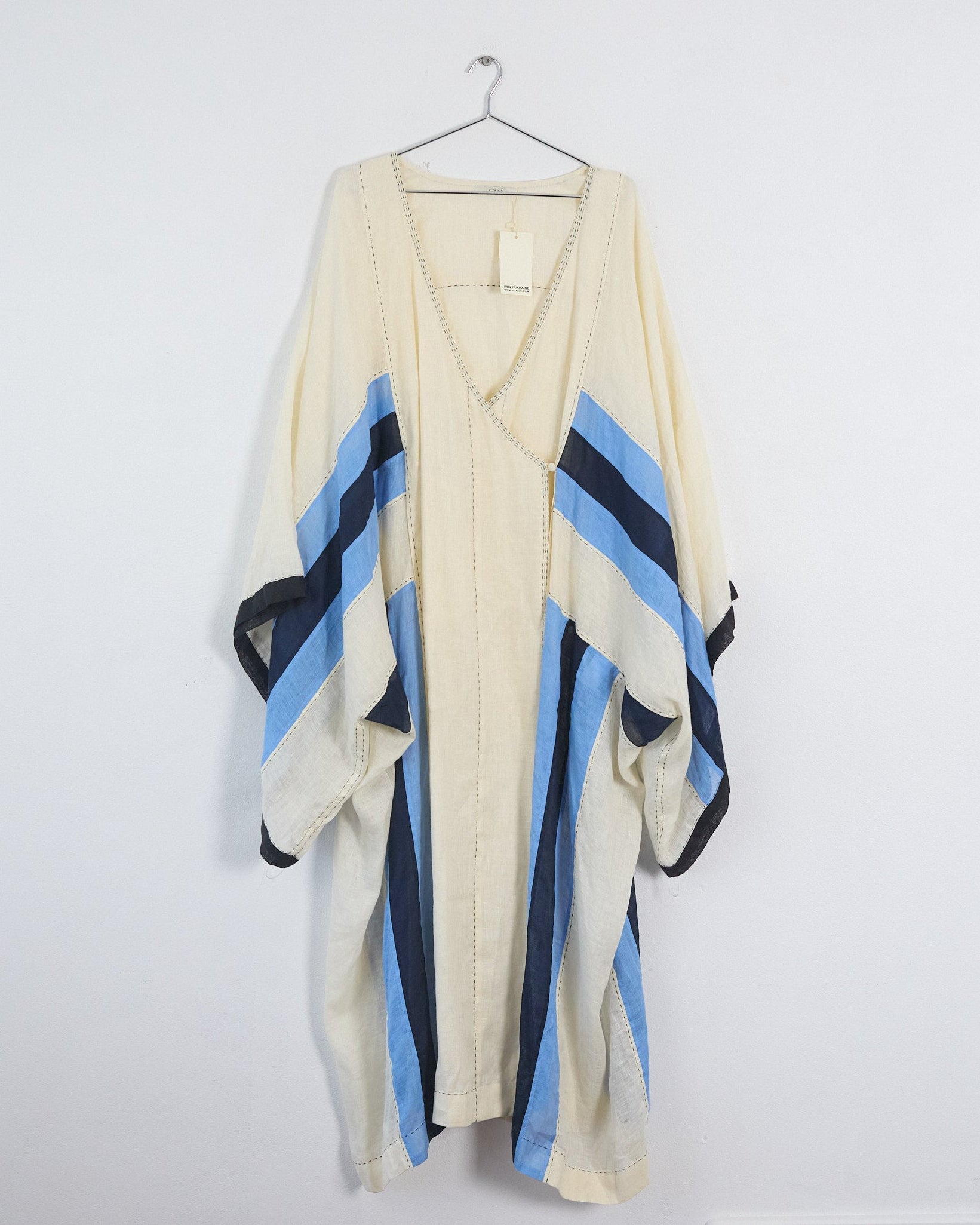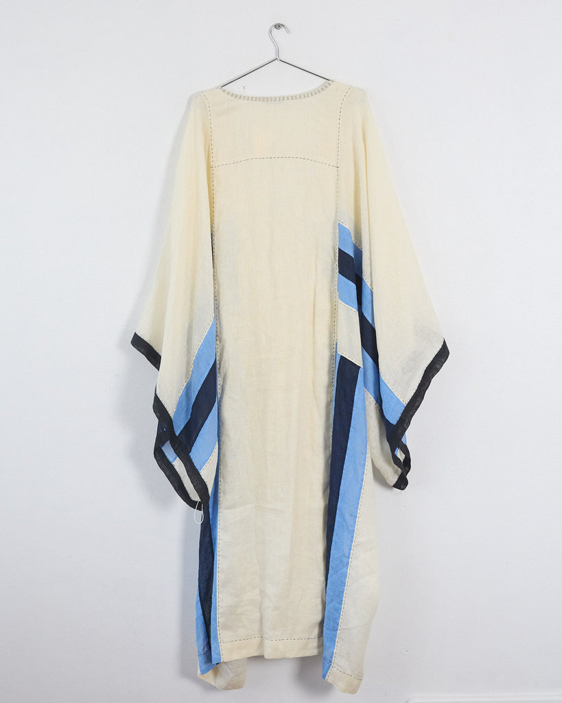 Vita Kin 'opium' linen wrap kimono dress, ivory, navy & blue, 10-18