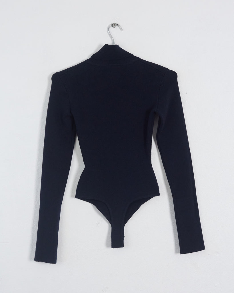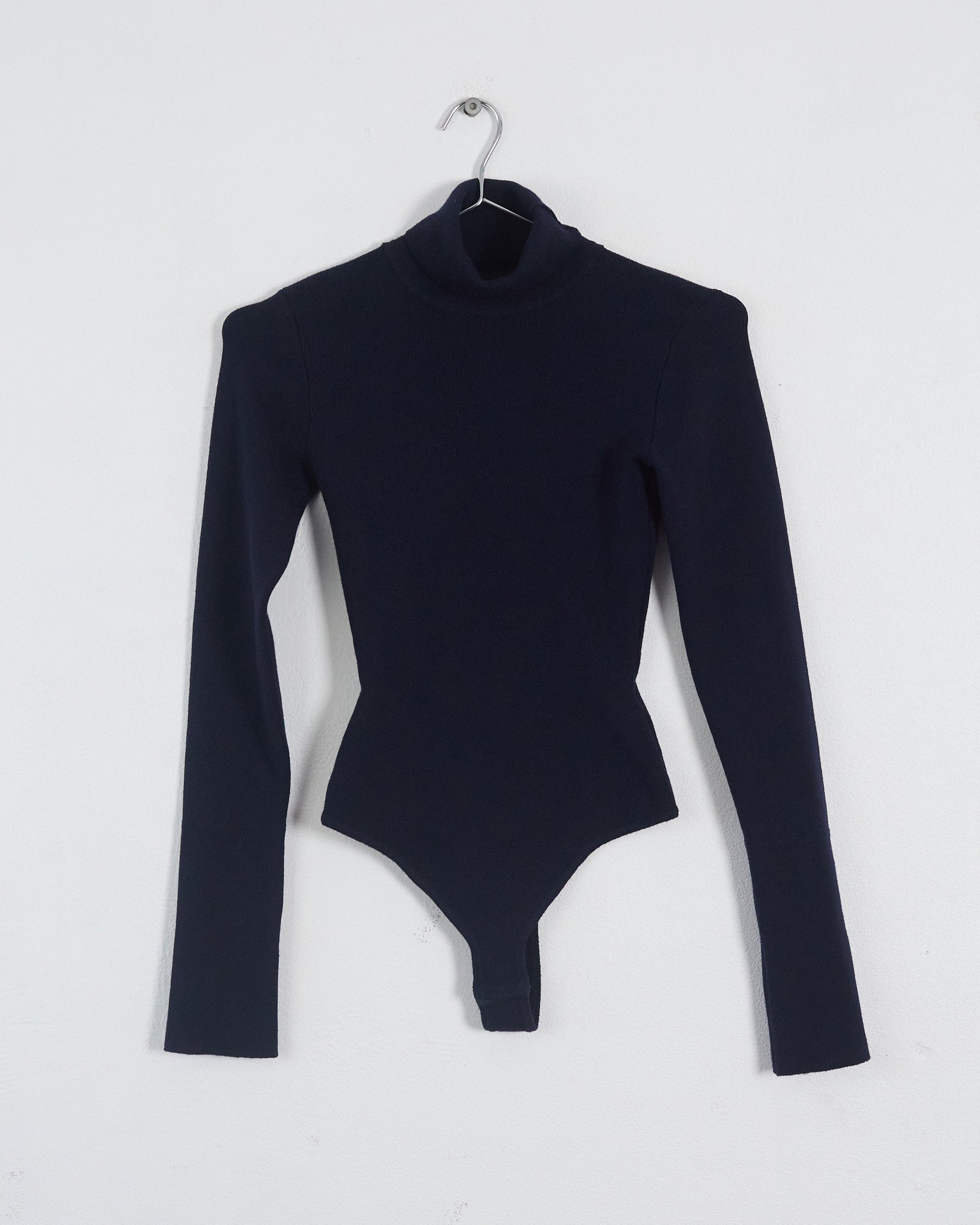 Khaite wool-blend turtleneck bodysuit, navy, 8