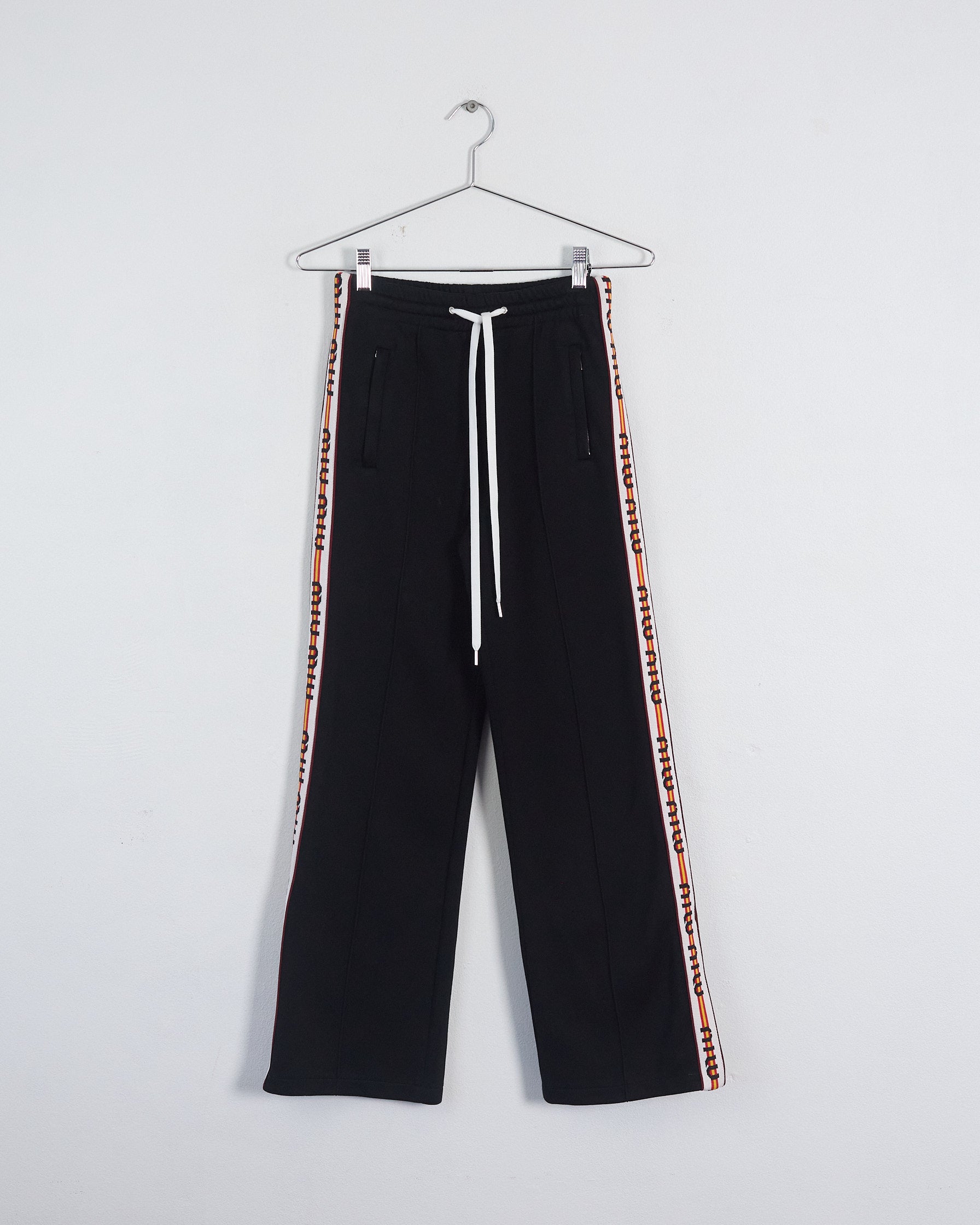 These Miu Miu Track Pants are a stylish addition to the athleisure wardrobe. Classically sporty with a straight fit and zip side cuffs, these are finished with contrast side trims bearing the house's signature logo. Details include side zip pockets, an elasticated waistband and contrast white grosgrain drawstring ties.