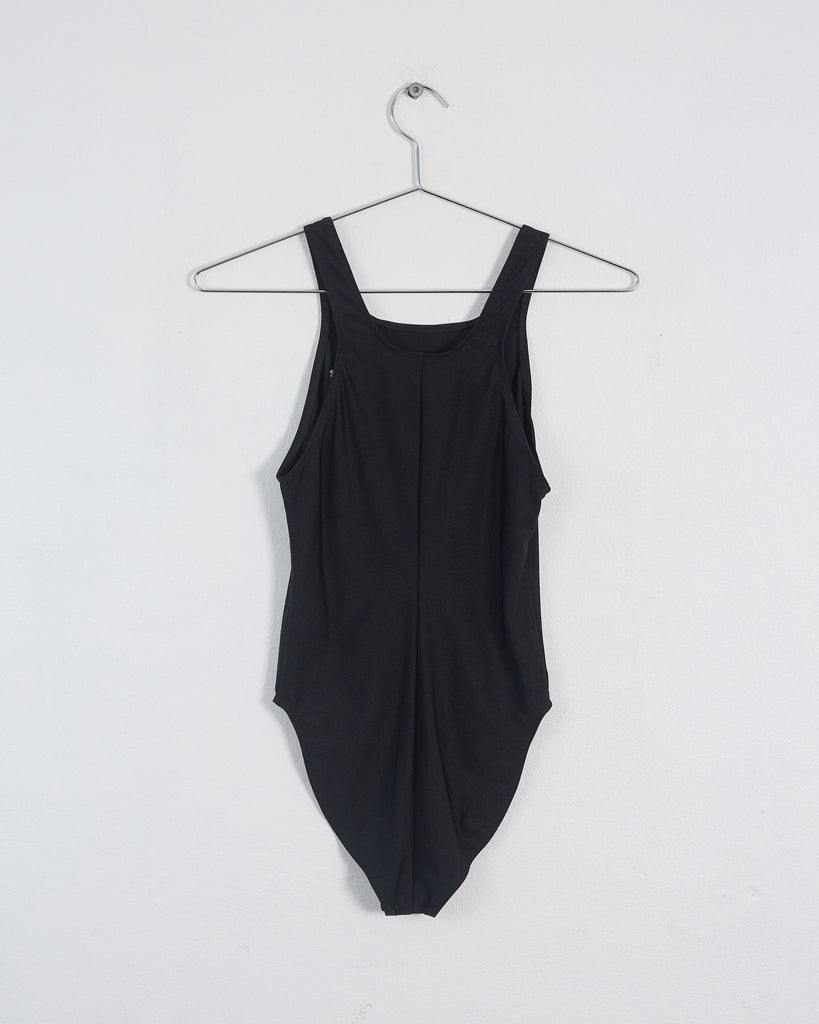 Drawing inspiration from vintage '80s swim aesthetics, this Tory Burch bodysuit combines contemporary sophistication with nostalgic charm. Crafted from supple stretch jersey with a subtle sheen it features an intricate swimmer motif rendered in delicate white seed beads. Practical snap closures at the base ensure effortless styling versatility. A refined piece that bridges retro appeal with modern elegance.