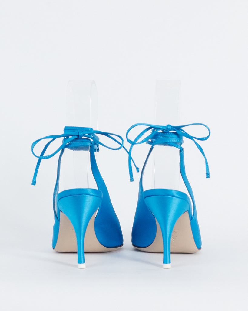 The Attico 'venus' satin ankle tie slingback heels, blue, 40