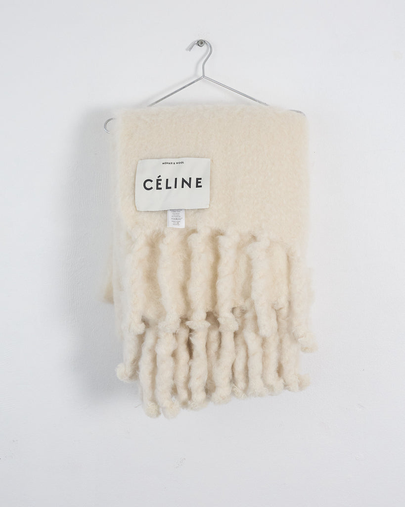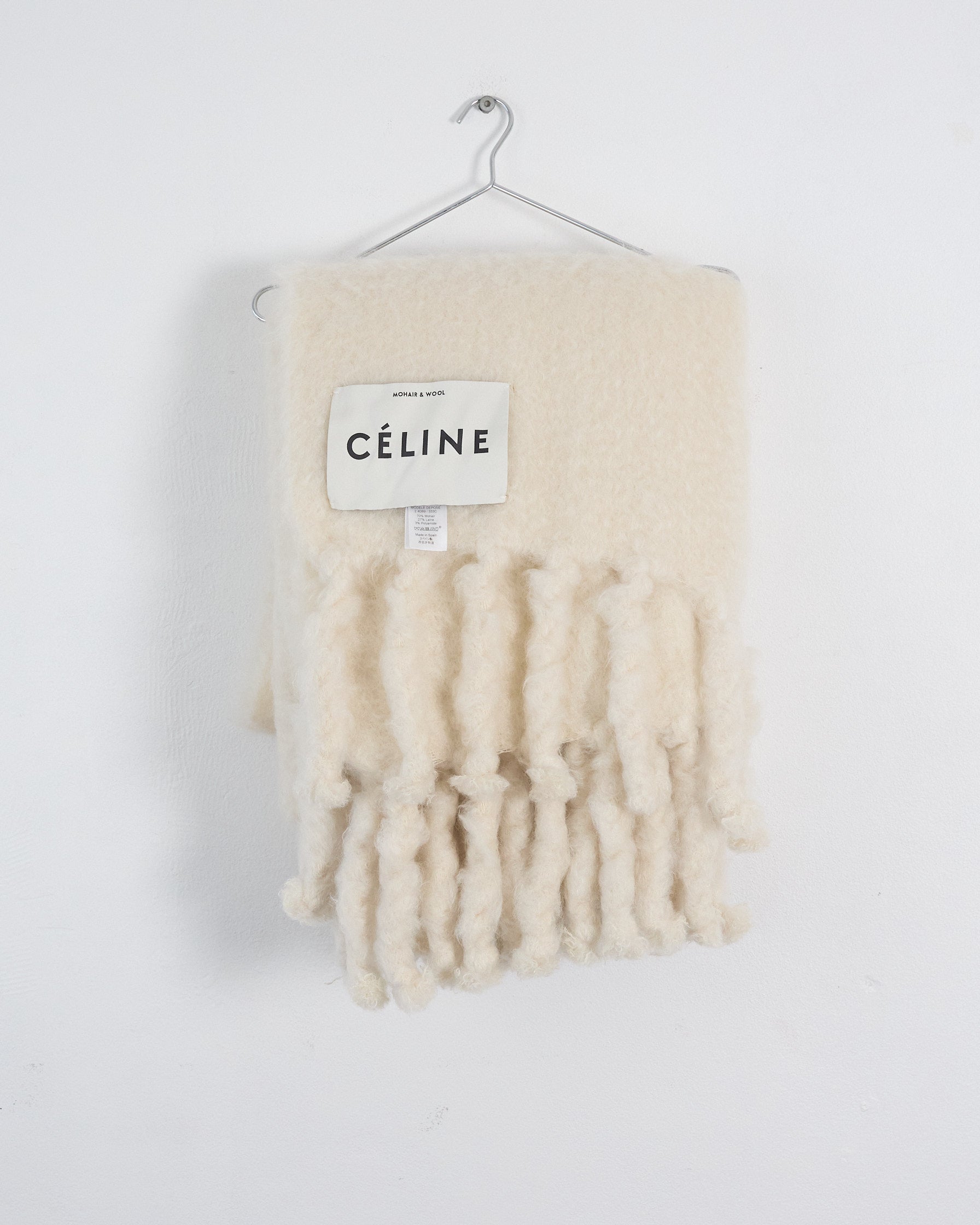 Céline fall '17 mohair blend oversized fringed blanket, cream