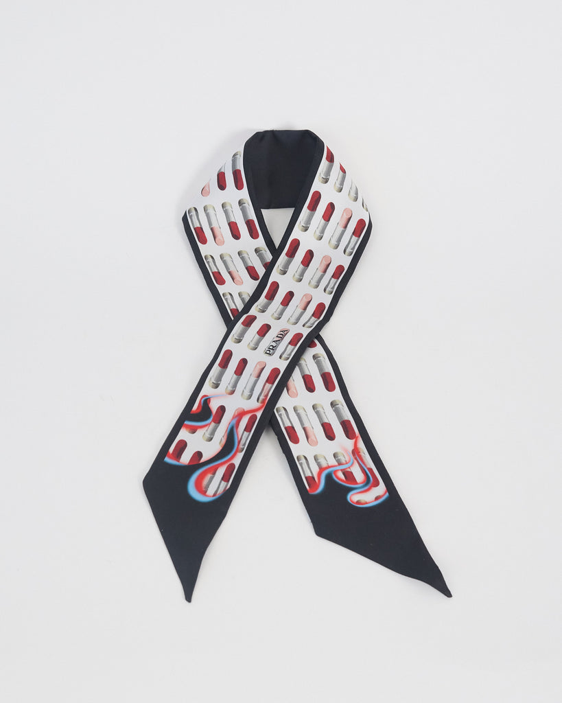 Prada prefall '18 lipstick print silk twilly scarf (in box), black & multi