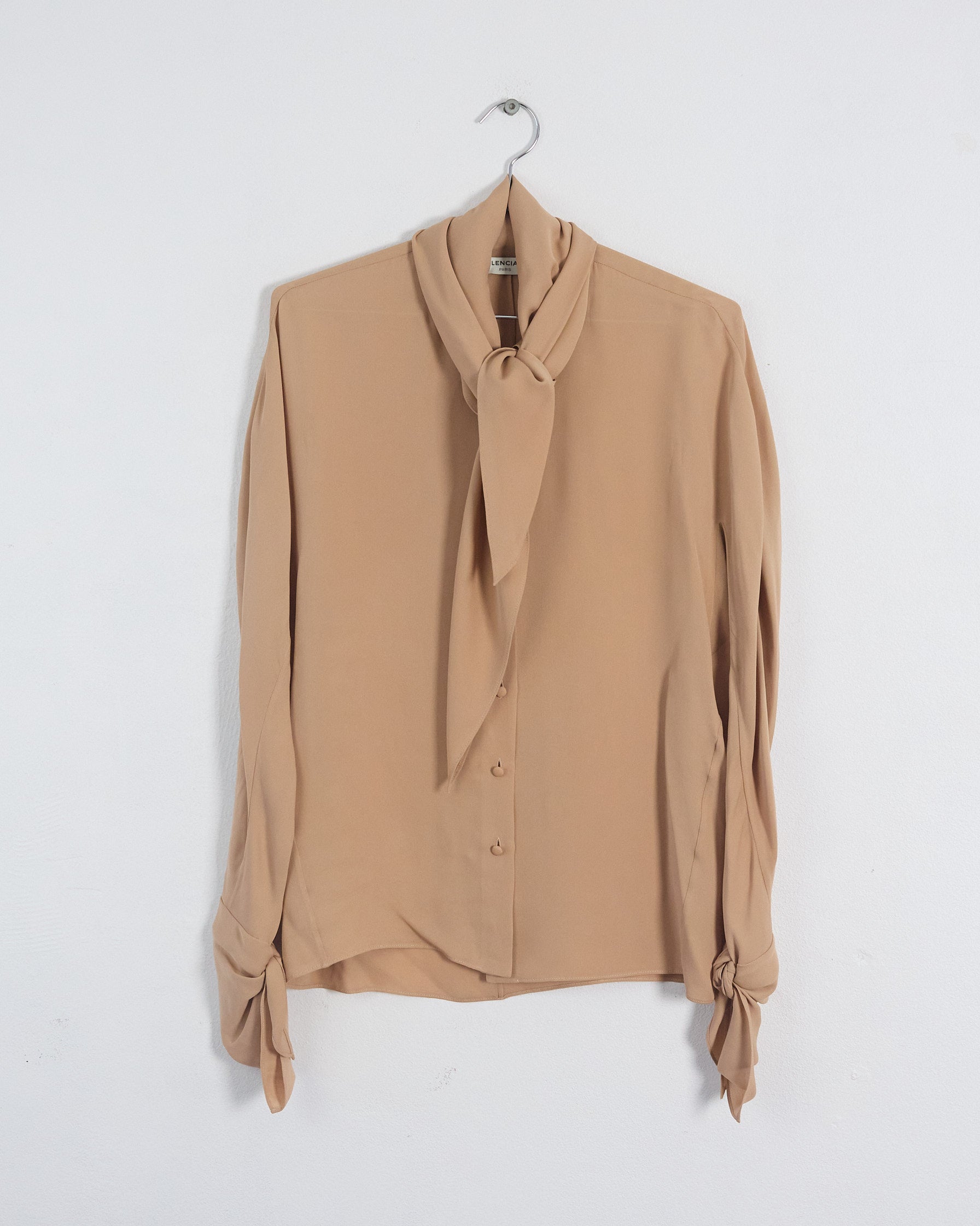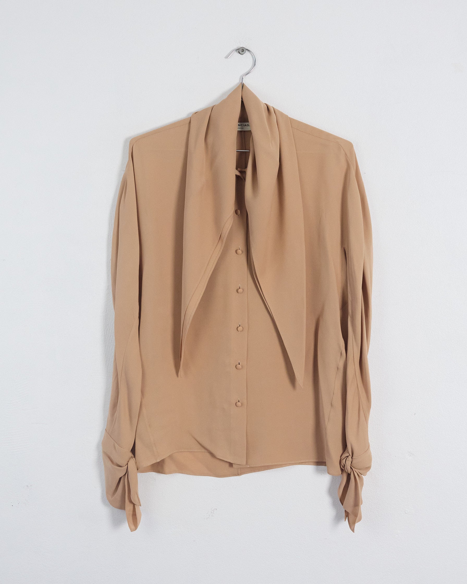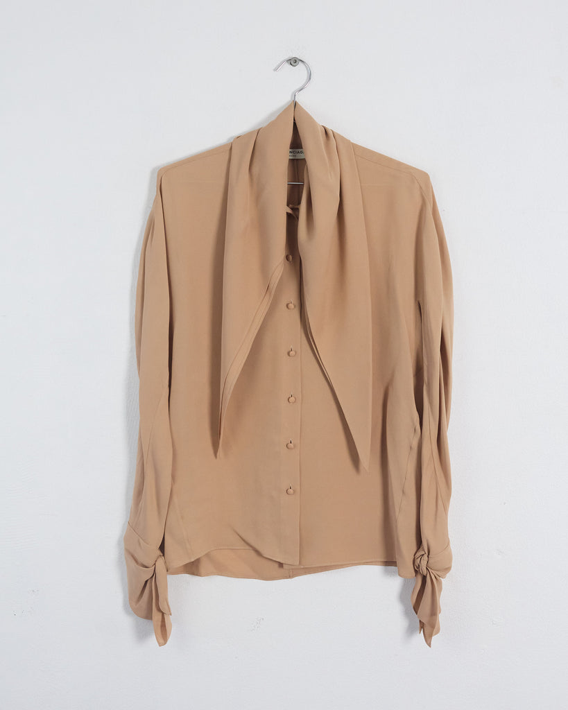Balenciaga prefall '16 silk necktie blouse, beige, 6