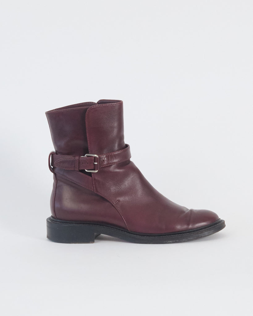 Céline 'moto' buckle ankle boots, burgundy, 37.5